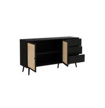 Buffet en Roble Claro 3 puertas con Patas de Metal, 142x35.5x83 cm.