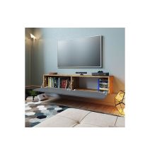 Mueble TV de Pared Color Blanco-Roble 140x31.6x29.6 cm - 2 Puertas - Estilo...