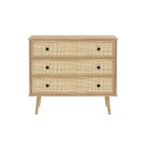 Cómoda de 3 Cajones con Patas de Madera - Color Natural - 90x39x79 cm -...